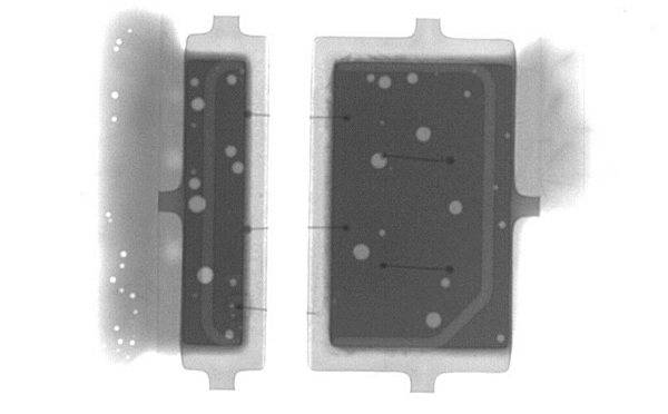 X-RAY檢測設(shè)備通過穿透樣品、檢測樣品內(nèi)部缺陷,是當(dāng)前非破壞檢測內(nèi)部缺陷效率且快速的方法只要。LED燈條板的主要故障集中在綁定金線。利用X-RAY檢測設(shè)備對(duì)LED燈條檢測并生成的影像圖,可以清楚的看到LED燈條內(nèi)部金線的位置以及有無開路、短路等異常。